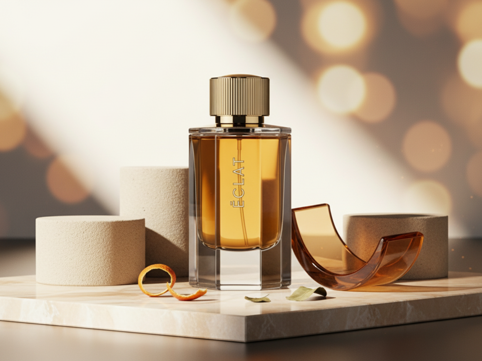 Create a professional photo to use it in as a social media advertisement, create a tropical style background and add product related objects around it.